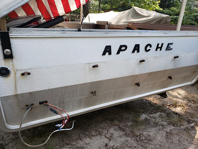 The rear lighting panel on the trailer was fitted with a bunch of incandescent light assemblies, some of which didn't work. I dropped the panel and found a spiderweb mess of wiring, and decided to rebuild it with LED lamps. Debbie ordered LED light units online, and I got busy. The resulting lighting is very bright and waterproof. While it was apart, I stripped the old dirty adhesive from the panel and beat a few dents out :-) Here's a few pics...